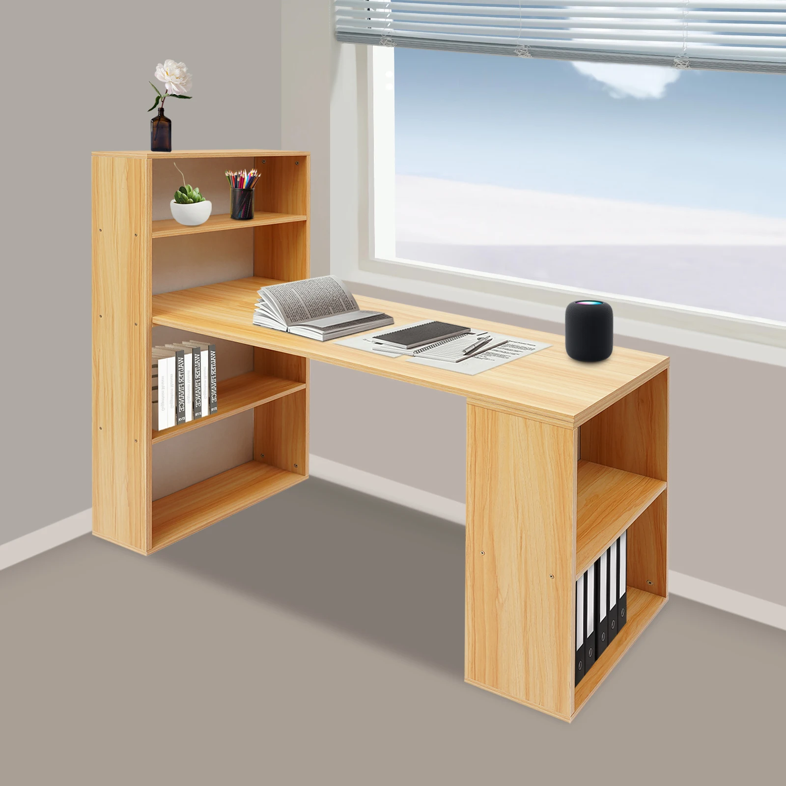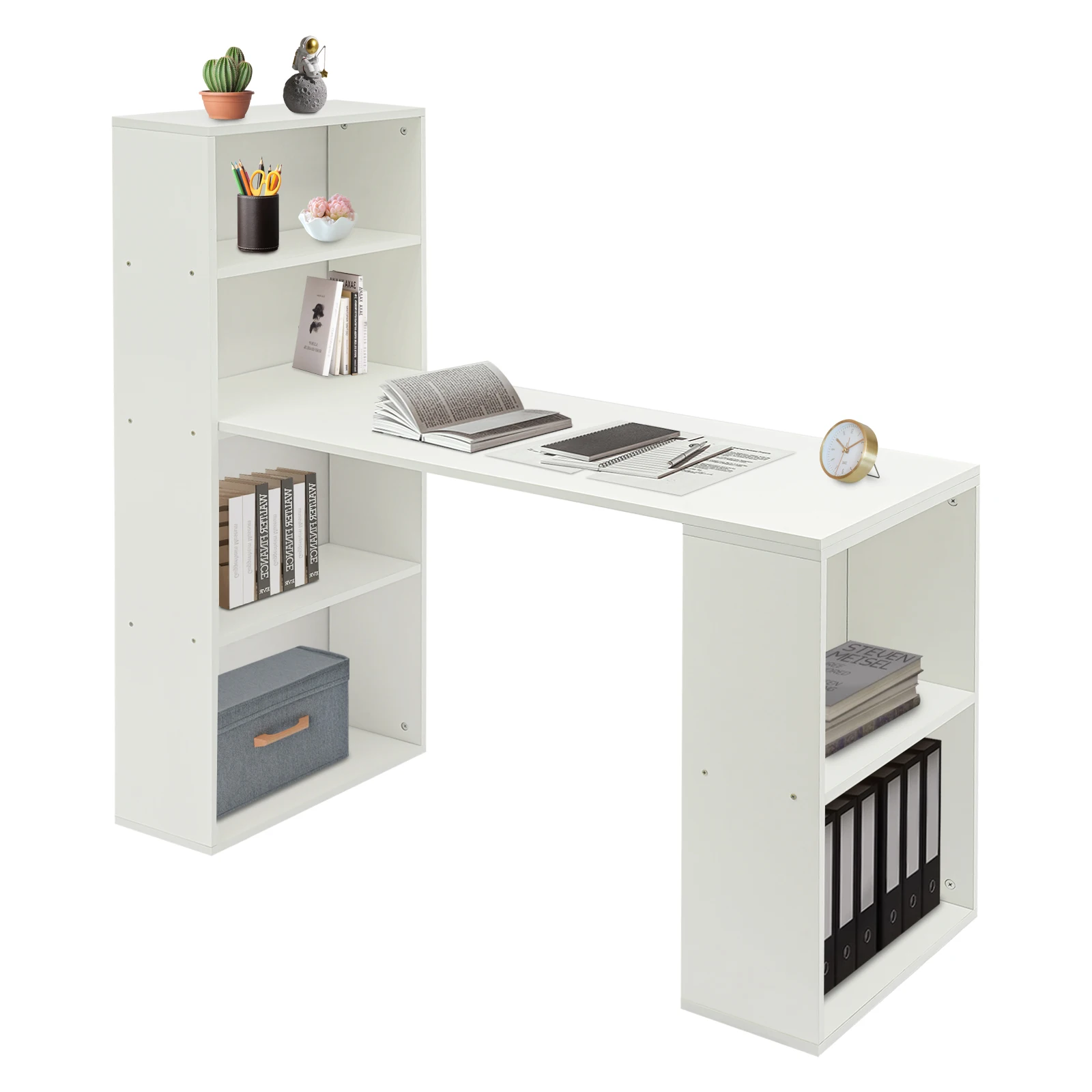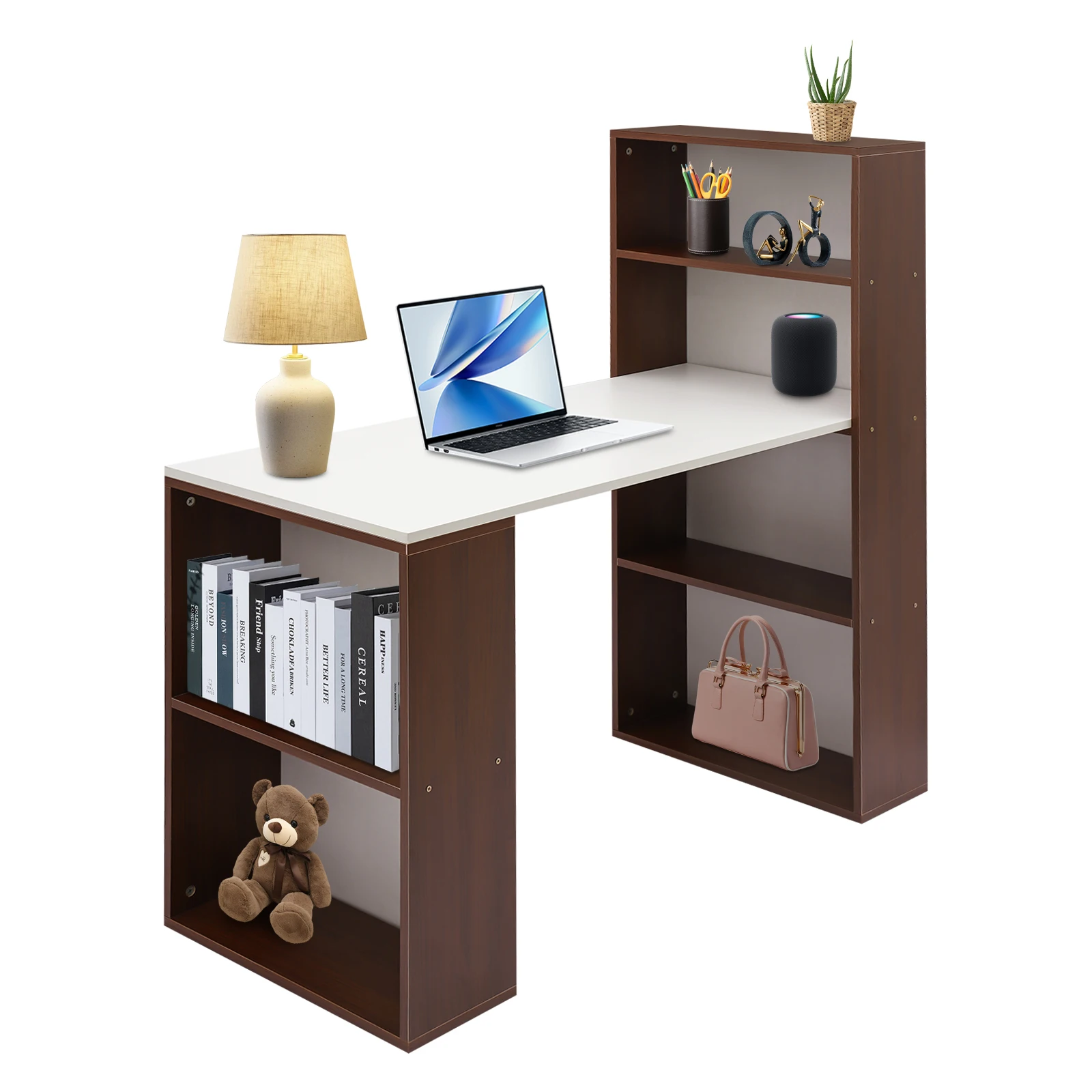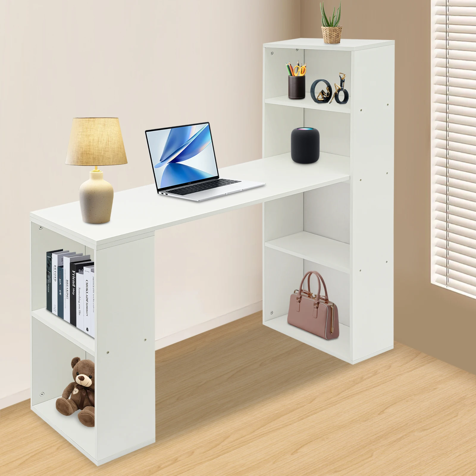 Are you looking for a beautiful and practical desk? Then don't miss our desk with shelves. The premium material makes it sturdy and durable. The strong load-bearing capacity allows you to use it with confidence. The 2-tier side shelves and 4-tier bookshelves provide you with ample storage space. The spacious desktop makes it convenient for you to study or work. In short, it is your assistant for studying or working.