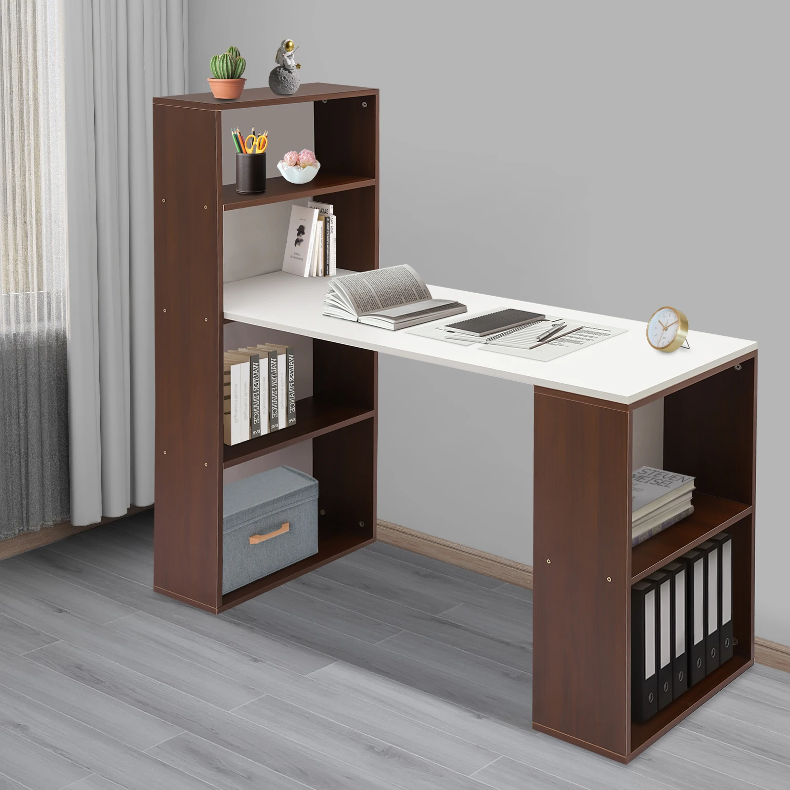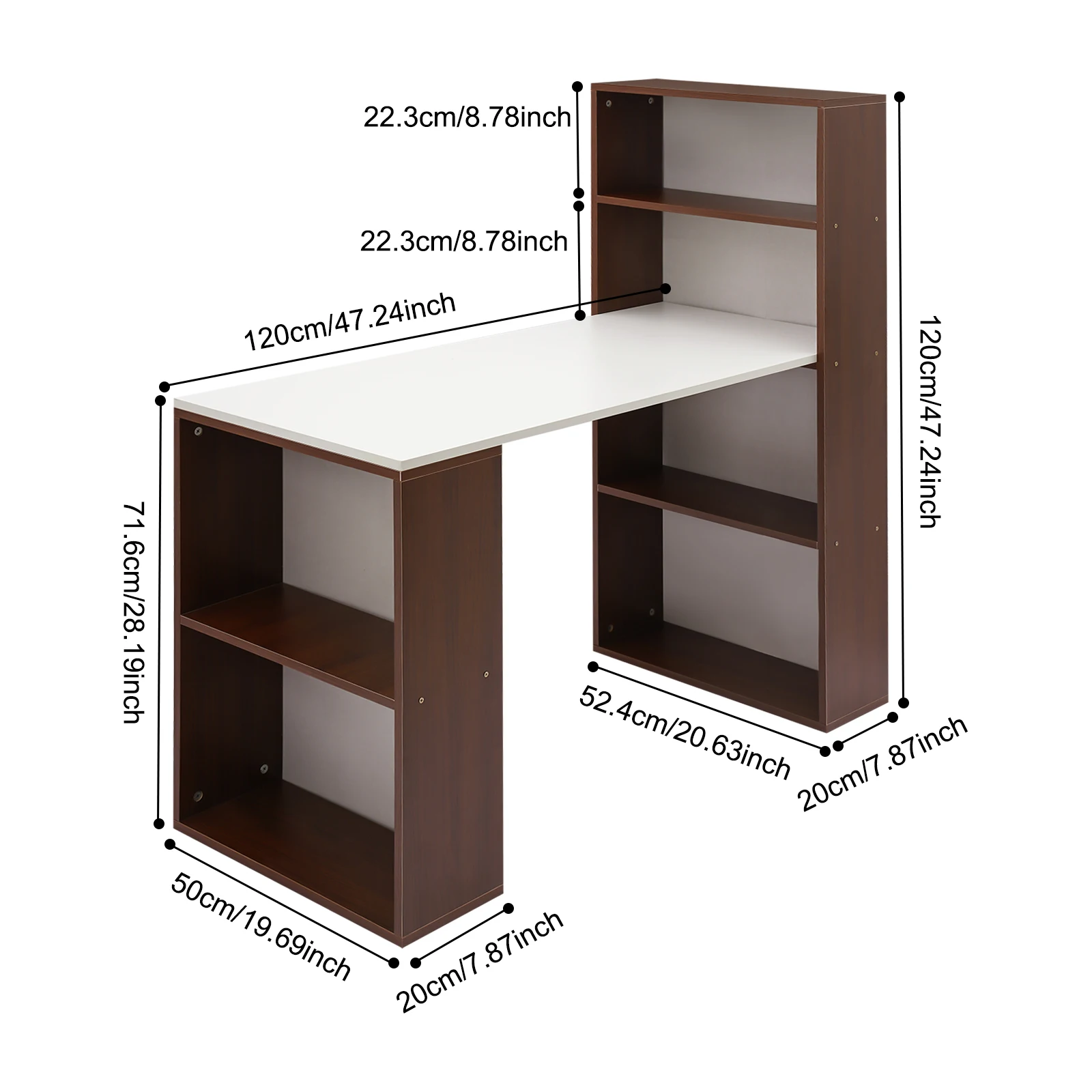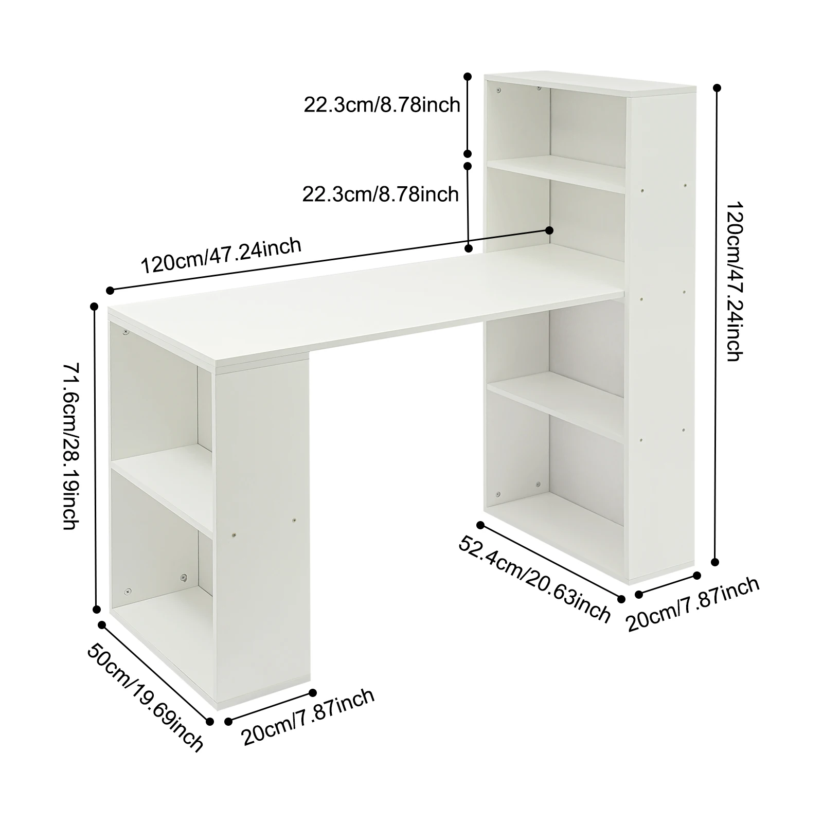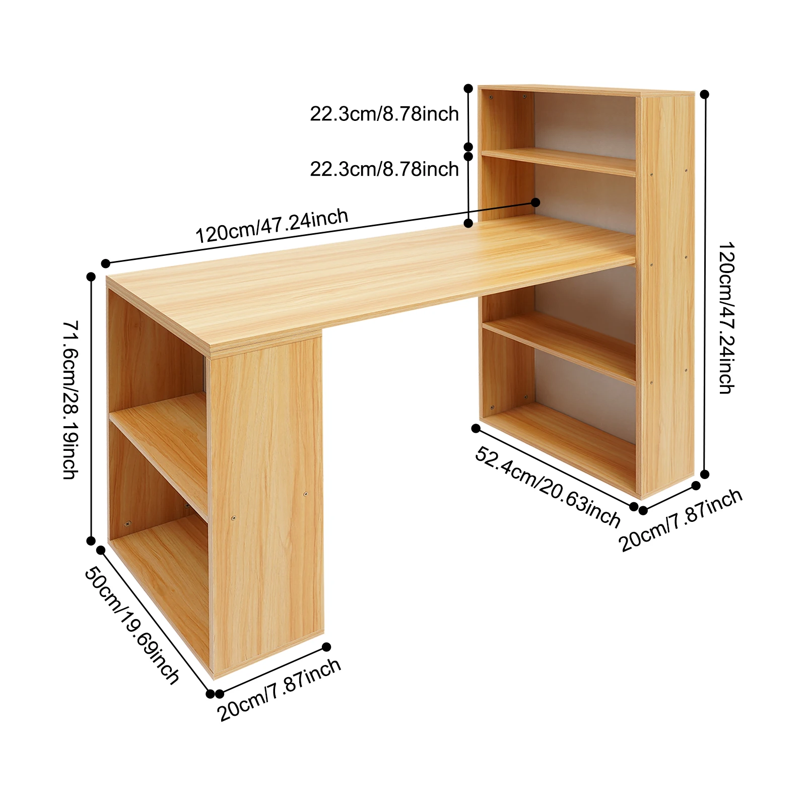 120cm Computer Desk w/Shelves Office Table w/Bookcase Student's Bedroom Desk Children's Learning and Writing Table w/bookshelf